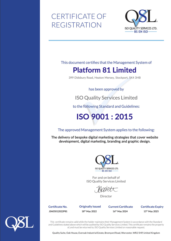Renewing our ISO 9001 certification brings several benefits to both Platform81 and our clients: